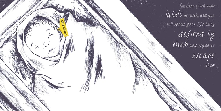 The aim of this project, through the format of a small illustrated book, is to highlight the inequalities and stigma around being working class, particularly the poorest of the working class, which has been named the precariat class.